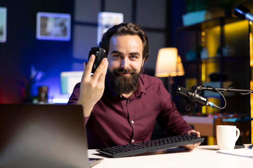 Untertitel, Audiodeskription, haptische Hinweise und kontraststarke Oberflächen eröffnen neue Wege der Teilhabe. Ein Prototyp vibrierte sanft auf wichtige Dialoge, während Lichtfarben die Stimmung erklärten. Rückmeldungen: Endlich fühlt sich Technik wie Unterstützung an, nicht wie Hürde. Kommentieren Sie, welche Features Ihnen fehlen.